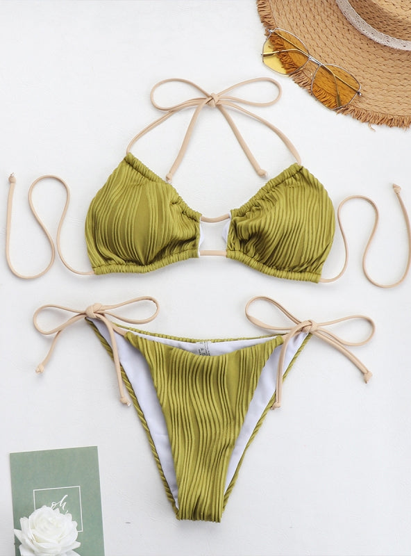 Stroll along the sandy shores with the White Triangle Bikini Top from Lilacoo. This ultra-cute and comfortable bikini top boasts scrunch fabrication with added stretch, triangle cups, a v-neckline, adjustable straps, and an adjustable back tie closure. The buttom, also showcases a scrunch fabrication with added stretch, a low-rise fit, adjustable tie sides, and cheeky seat coverage. This ultra-cute and comfy bikini bottom is perfect for completing your beach look.