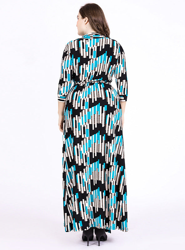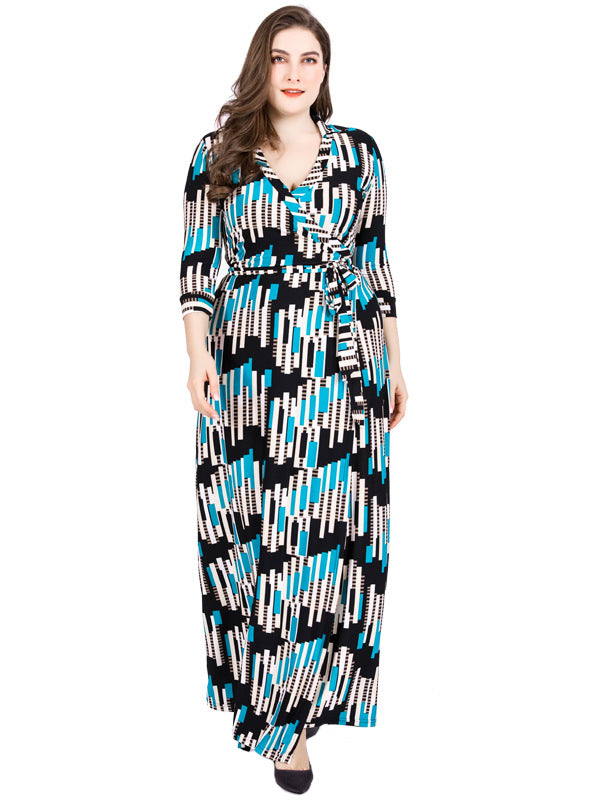 Geometric Printed Wrap V-neck Cropped Sleeves Dress