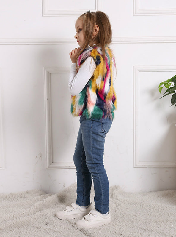 Girls' Short Casual Fur Winter Waistcoat