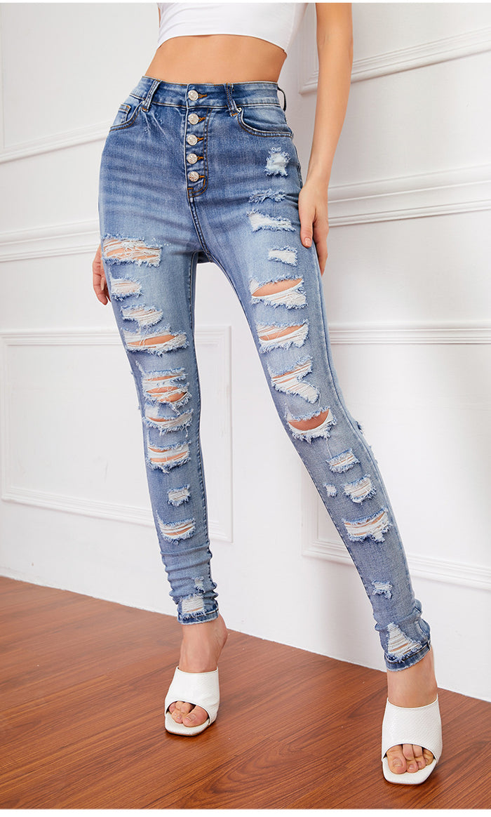 Popular elements: washed, whitened, buttons, worn by hand, high waist