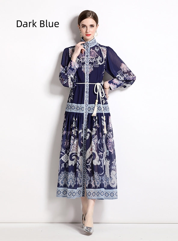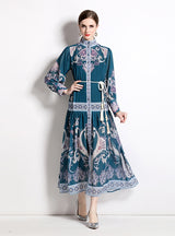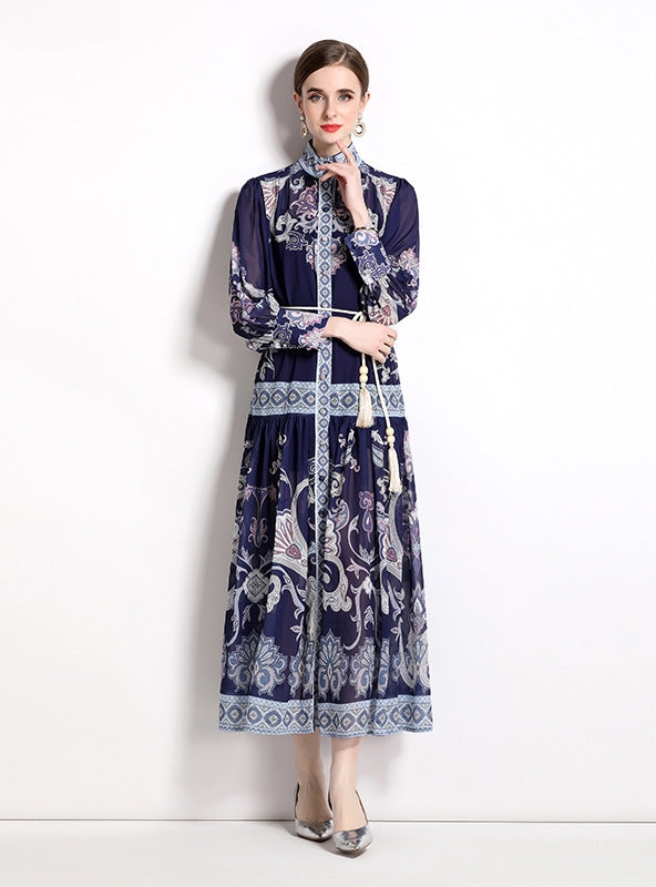 2024 Holiday Style Retro Printed Long-sleeved Dress