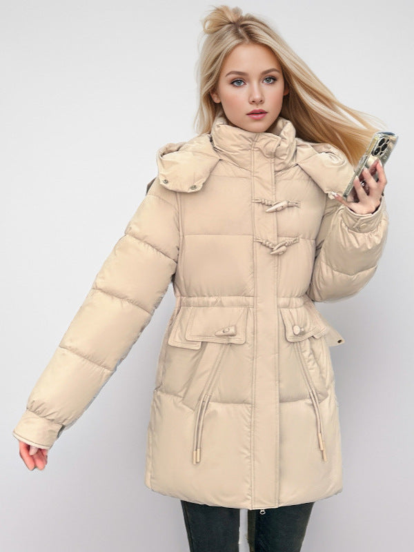 Multifaceted in style and function, this deep red parka stands out with its vibrant color and cozy design. The rich, warm hue makes a bold statement, ensuring you’ll be noticed even in the depths of winter. This coat’s thick padding and length make it ideal for extremely cold weather, providing full coverage and warmth from head to thigh. The toggle closures add a touch of traditional charm, while the front pockets provide ample storage and convenience. Perfect for winter strolls or holiday festivities, this parka effortlessly combines practicality with festive flair. It’s the perfect addition for anyone looking to add a splash of color and warmth to their winter wardrobe, combining functionality with an undeniable sense of style.
