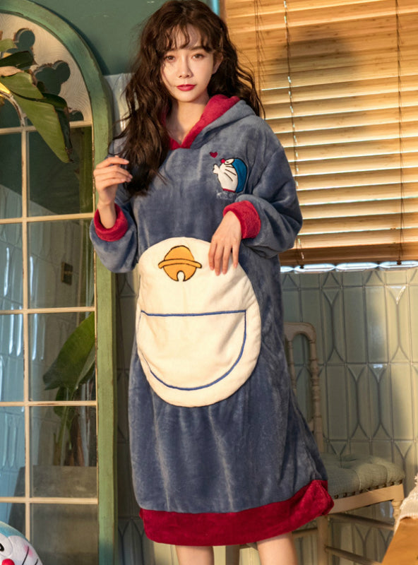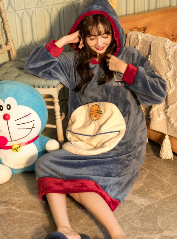 Jingle Cats Long Sleeve Hooded Korean Version Coral Velvet