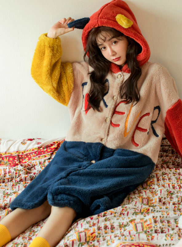 Letter Thickened Coral Fleece Robe Long Nightwear