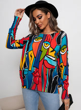 Let art and fashion converge with this vibrant abstract print sweater. A canvas of bold colors and striking forms, this piece captures the eye and ignites the imagination. Crafted with a luxuriously soft fabric, it's designed to keep you both warm and stylish. The relaxed fit allows for effortless layering, while the ribbed hem ensures a snug feel. It's perfect for those who dare to make a statement and appreciate the allure of wearable art. Pair with simple bottoms to let the sweater take center stage.