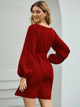Stay cozy and stylish with the Lilacoo Burgundy Bodycon Sweater Dress. The soft, medium-weight ribbed knit fabric creates a plunging surplice bodice and long sleeves. The bodycon mini skirt flatters your curves, while the tying sash belt cinches your waist. The surplice detail and supportive strap at the back add an extra touch of chic to this dress.