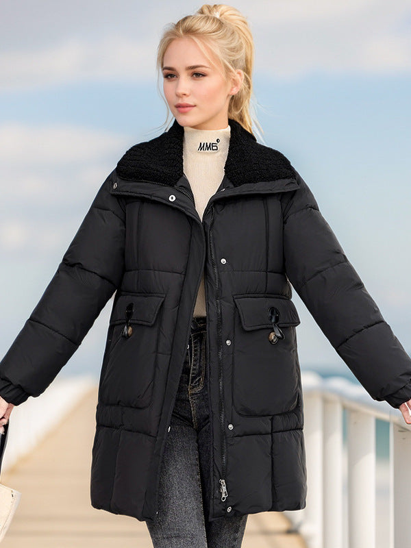 Offering a refined and timeless aesthetic, this deep brown coat is a masterpiece of understated elegance. The luxurious high collar, lined with soft fleece material, keeps you warm while framing your face with style. Its functional details, including flap pockets with button accents, enhance both its practicality and visual appeal. The quilted design provides superior insulation while maintaining a lightweight feel, making it ideal for cold-weather outings. This coat’s relaxed fit allows for easy layering, whether you pair it with a cozy sweater or a sleek turtleneck. The zipper and button closure provide full coverage against harsh winds, ensuring your comfort during outdoor adventures. Perfectly versatile, it complements casual looks like jeans and boots or more sophisticated ensembles. Durable, warm, and endlessly stylish, this coat is a winter wardrobe essential.