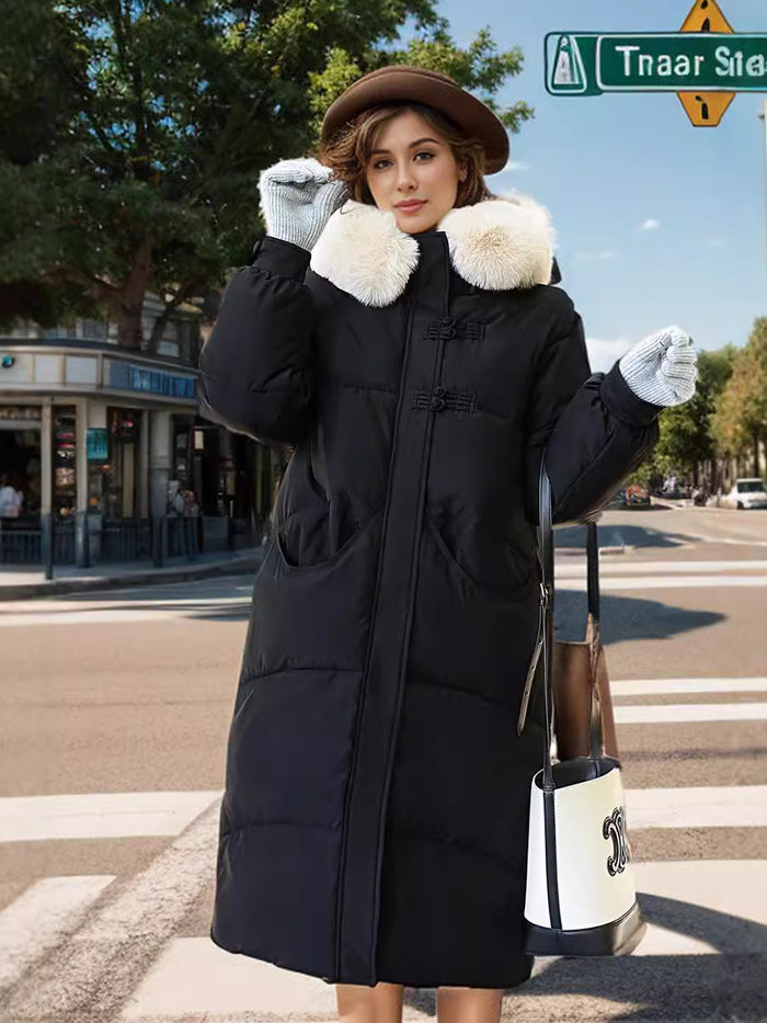Obsession with elegance meets functionality in this stunning yellow down coat. Designed to make a bold statement, this coat effortlessly combines warmth with urban sophistication. Its oversized faux fur-trimmed hood not only adds a touch of luxury but also provides extra protection from the biting cold. The unique quilted pattern not only enhances the insulation but also gives a flattering silhouette, ensuring you look chic even in the harshest weather. The front zipper closure, concealed with stylish buttons, ensures an extra layer of wind resistance, while the deep side pockets offer ample space for your essentials. Lightweight yet remarkably warm, the coat is crafted from premium water-resistant fabric, ensuring you stay dry and cozy during sudden snow or rain showers. This versatile piece is ideal for both casual strolls and evening outings, making it a must-have for your winter wardrobe. Step out confidently and experience winter fashion like never before.