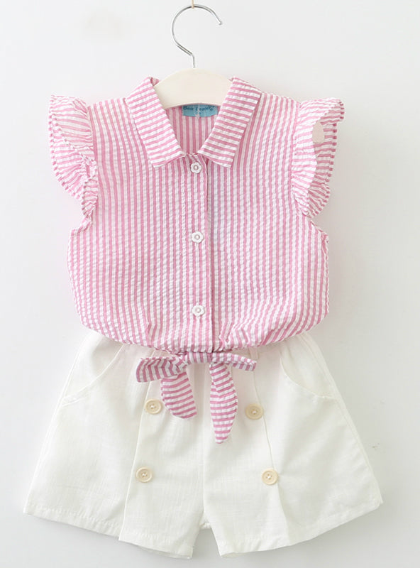 O-Neck Sleeveless Solid Kids Clothing Sets