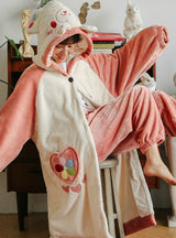 Pink Flower Lovely Bear Flannel Long Nightgown Home Service