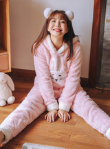Pink High Neck Rabbit Coral Velvet Pajamas