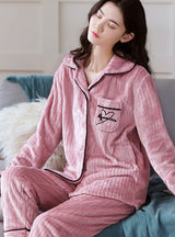 Pink Velvet Long Sleeve Pocket Sleepwear