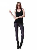 Printed Pants Lady Elastic Wet Look Black Leggings