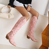 Choose from solid colors like black, yellow, pink, and white, or opt for embroidered designs that add a touch of elegance to any outfit. Our boots are available in US sizes 4.5 to 11, so you can find the perfect fit for your feet.Made from high-quality leather, our boots feature a rubber outsole that ensures durability and longevity, making them perfect for everyday wear. The chunky heel adds a touch of style and sophistication, while the pull-on fastening and pointed toe design make them easy to wear and comfortable all day long.With knee-high tube height, our boots are perfect for the autumn, fall, and winter seasons, keeping your feet warm and stylish at the same time. Whether you're heading to work, going on vacation, or just running errands, our boots are perfect for any occasion.Don't miss out on the opportunity to add a touch of elegance to your wardrobe with our stunning knee-high boots. Order now and experience the perfect blend of style, comfort, and versatility.