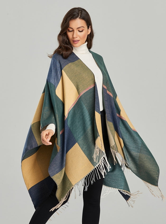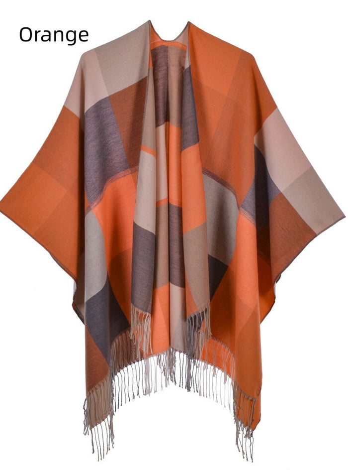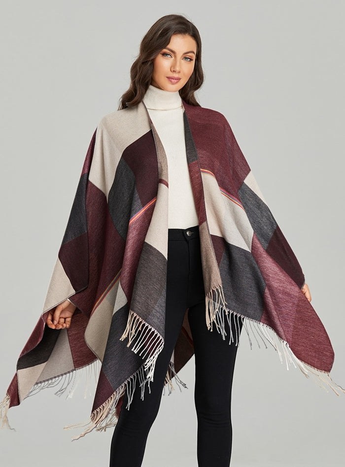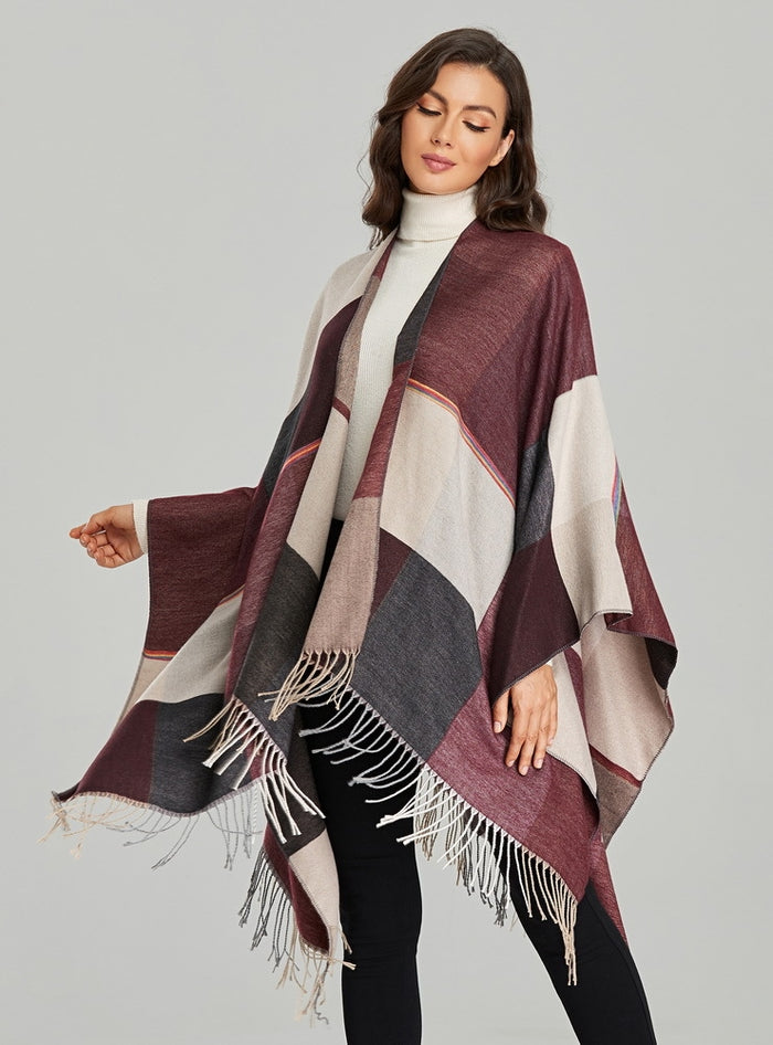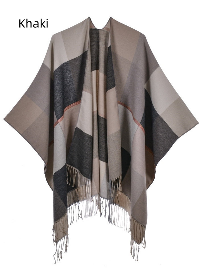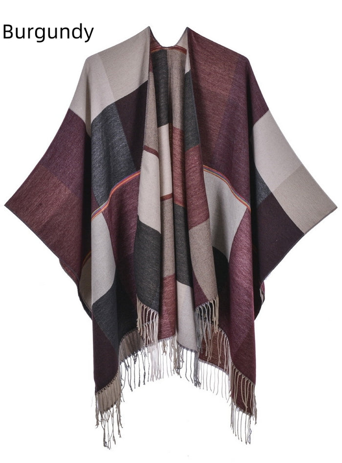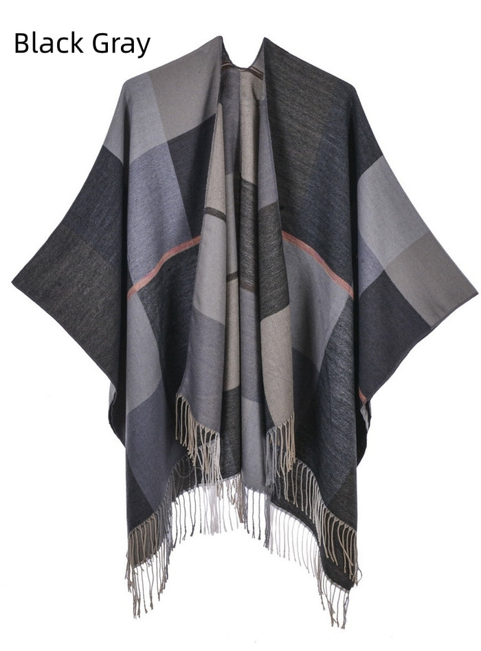 Set forth in absolute luxury with our Retro Fashion Jacquard Split Thick Warm Shawl. Made from high-quality cashmere imitation, this shawl isn't just a fashion statement—it's a declaration of elegance. Generously sized at 135-175CM in length and 130CM in width, it offers both comfort and versatility. The combination of plain weave and intricate jacquard creates a check pattern that is both subtle and mesmerizing. But what really catches the eye are the tastefully done tassels that lend a dash of excitement to this chic accessory. Take it along on your next jet-setting adventure, or add that extra layer of sophistication to your daily attire.’