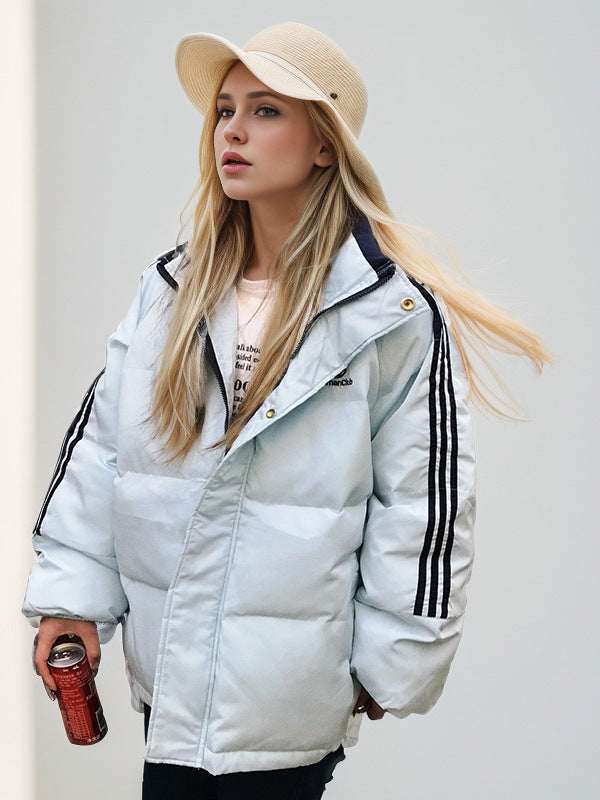 Made with a sporty edge, this off-white puffer jacket is a fantastic blend of comfort and style. The stripe details along the sleeves give it an athletic look, while the quilted design provides warmth and insulation. The coat’s relaxed fit makes it ideal for layering, whether over a casual hoodie or a warm sweater. The high collar offers extra protection against the wind, and the durable fabric ensures that it withstands everyday wear. Lightweight and easy to move in, this jacket is perfect for an active lifestyle, providing both warmth and flexibility. The clean, off-white color gives it a fresh, versatile look, easily paired with various outfits. For anyone looking to add a touch of sporty chic to their winter collection, this jacket is an excellent choice that combines fashion with functionality.