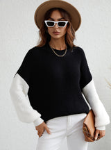 Drift into a realm of comfort and effortless chic with our khaki round-neck knit sweater. The loose-type version is spun from irresistibly soft knitting material, intended to swaddle you in sheer comfort. Featuring color block long sleeves that make a striking visual statement, this ordinary-length sweater is ideal for both laid-back home vibes and sophisticated office settings. It's a piece you'll find yourself reaching for time and again, regardless of the occasion.