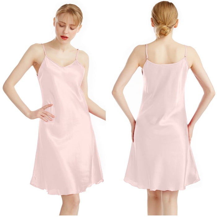 Framed in luxurious red satin, this nightgown is the epitome of elegance and comfort. The vibrant red color is both eye-catching and sophisticated, adding a touch of glamour to your sleepwear collection. Made from high-quality satin, this nightgown offers a smooth and silky feel against your skin, ensuring a comfortable and restful night's sleep. The adjustable spaghetti straps allow for a customizable fit, ensuring you feel supported and comfortable. The V-neckline adds a hint of allure, while the flowing A-line silhouette flatters every body type, giving you a graceful and feminine look. This lightweight nightgown is ideal for warm nights, as it allows your skin to breathe and keeps you cool and comfortable. Whether you're winding down after a busy day or enjoying a leisurely morning at home, this nightgown promises to make you feel pampered and stylish. Indulge in the luxury and elegance of this beautiful satin nightgown and elevate your nighttime routine to new heights.