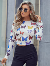 Get ready to fall in love with the endless styling possibilities of the butterfly long sleeve blouse! Featuring sultry and sheer mesh knit fabric adorned with a striking butterfly print, this flirty top boasts a bodycon silhouette, mock neckline, and long sleeves for an alluring and chic look. Whether you dress it up with a mini skirt and heels or go for a more casual vibe with jeans and boots, this top is sure to be a stunning addition to your wardrobe. Don't wait to make a statement with this unforgettable piece!