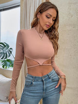 Make a lasting impression with the Lilacoo Pink Long Sleeve Crop Top, ensuring you look chic at all times. The top is crafted from lightweight woven fabric, making it perfect for a vacation look. It features a V-neckline and long sleeves with long sleeve and elasticized cuffs. The cropped bodice is designed with a flirty keyhole cutout before ending at a banded hem, while the open back design secures with a tying sash detail at the hem. Pair it with the matching pants to create a complete and stylish look that is perfect for any occasion.