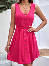 Get ready to experience the essence of a sunny summer in the Lilacoo Button-Up Sleeveless Midi Dress! The dress is made of light and airy linen-blend fabric that creates a flowy silhouette. It features a square neckline. Whether you are on a beach vacation or a city escape, this dress is a must-have for your summer wardrobe.