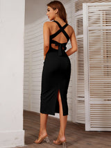 Solid Color Slim Sling Slit Dress