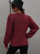 Step out in style with this green slim-fit knitted sweater. The lace sheer long sleeves add a romantic twist to an otherwise classic piece. Featuring a round neck, this sweater is the epitome of chic comfort. Pair it with a floral skirt or distressed jeans for a look that effortlessly transitions from day to night.