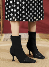 Step up your shoe game with our Fashion Stitching Elastic Boots, featuring a retro small square toe and back zipper for easy on and off. These ankle boots are perfect for adding a touch of personality and style to your outfit.The tip design is not only stylish but also adds a unique touch to your overall look. With multiple sizes and color options to choose from, these boots are perfect for you, your family, or friends.