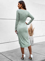 Bring some serious luxury to your weekend wardrobe with this beautiful emerald green mesh ruched long sleeve draped midi dress. Made with a beautiful emerald green mesh material, it features long sleeves, ruched detailing, and a draped design that exudes elegance. This midi dress is a must-have for your next special occasion, doll. Team it up with tie-up heels and a mini bag for a look that will surely turn heads for all the right reasons. You won't regret adding this women's mesh dress to your collection.