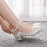 Popular elements: shallow mouth, buckle, rhinestone, square heel