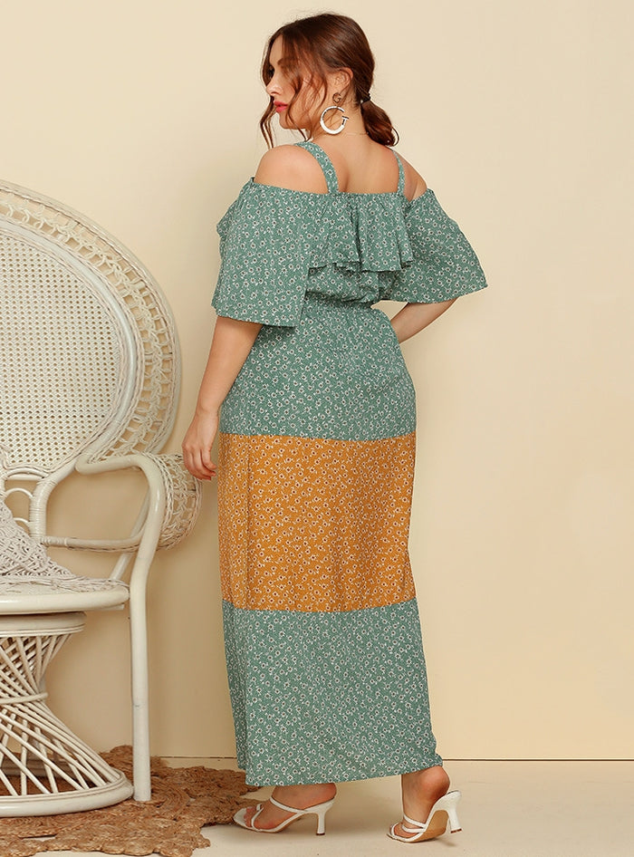 It designed to help you achieve a stylish and boho-inspired look effortlessly. This enchanting dress features a beautiful floral pattern that dances across the fabric, while the off-the-shoulder design adds a touch of elegance and sophistication.Perfect for any occasion, this maxi dress can be dressed up or down with ease. Pair it with your favorite jewelry and a wide-brim hat for a chic, bohemian vibe, or wear it with simple sandals for a more casual affair. Made with high-quality materials, this dress provides exceptional comfort and a flattering fit for all body types.