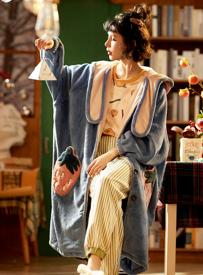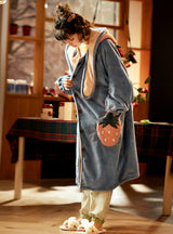 Strawberry Coral Fleece Pajamas Bathrobe Warm Hooded
