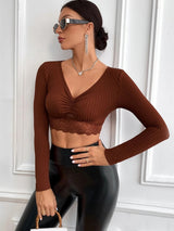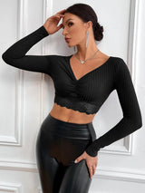 Elevate your weekend wardrobe with this chic tall black long sleeve crop top featuring a ruched front. The versatile top is crafted from black material and features a cropped length and long sleeves, making it a must-have for any fashion-forward wardrobe. The ruched front adds a touch of sophistication and style to the look. To take your outfit to the next level, pair this top with the matching skirt, high heels, and accessories for a head-turning look that's sure to impress. Don't miss out on this fashionable and versatile crop top!