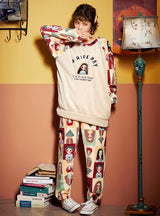 Warm Coral Fleece Two-piece Suit Round Neck Cartoon