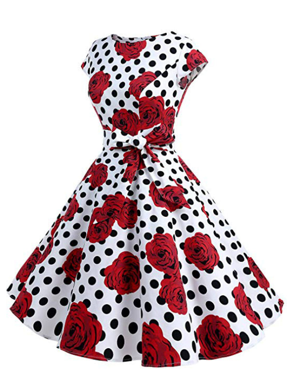 White Point Red Flower Vintage Dress
