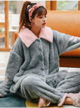 Women Blue Cherry Blossoms Coral Velvet Pajamas Women Thick Warm