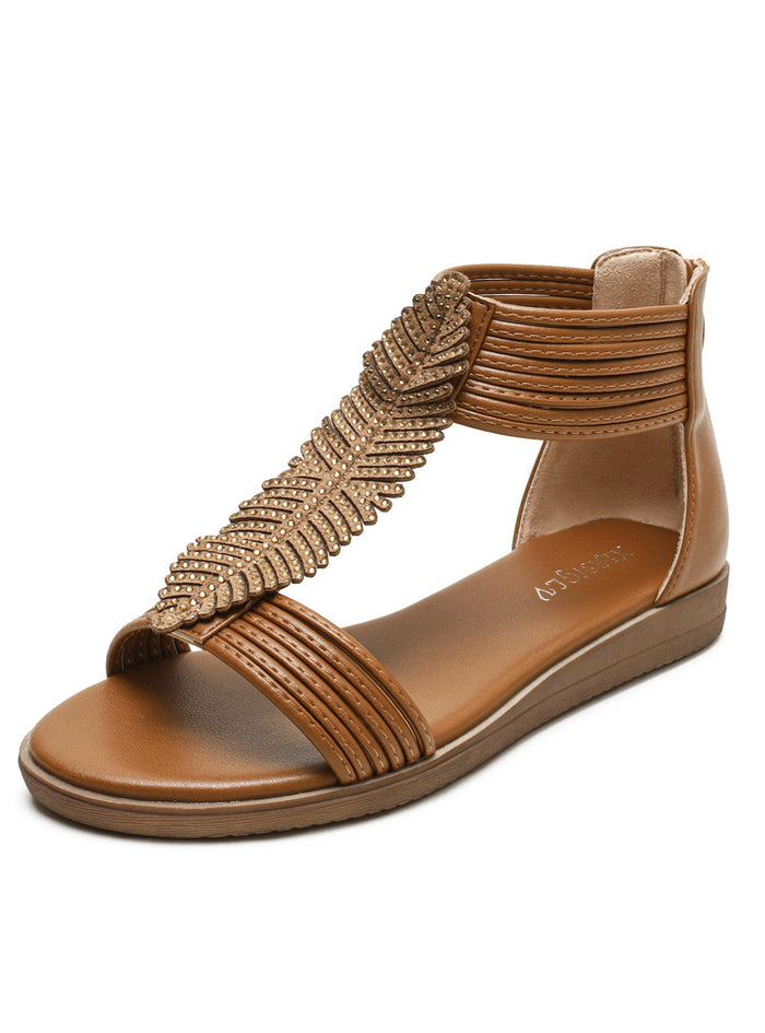 The open toe design and leaf-shaped lace detailing make these sandals a stylish and elegant choice. The flat heel and casual style make them perfect for a range of outfits, from casual to more dressed up looks.