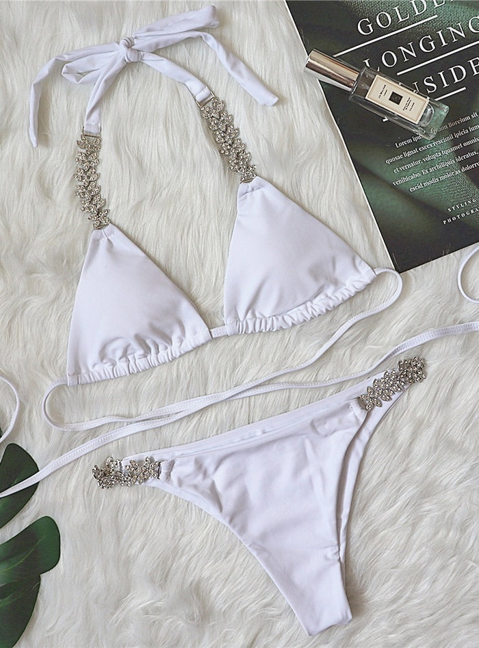 Cross Solid Color Metal Diamond Swimsuit