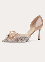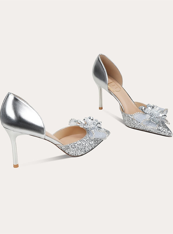 The silver pumps are a perfect blend of classic beauty and modern design. The crystal yarn detailing adds a touch of glamour and sparkle, while the high heel design gives a flattering and sophisticated look. Whether you're dressing up for a special occasion or keeping it casual, these shoes are the perfect finishing touch to any outfit.