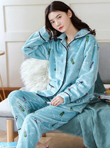 Women Pink Pencils Long Sleeve Nightwear Suit