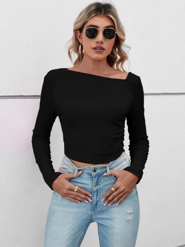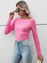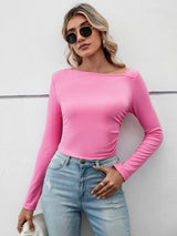 Revitalize your basic wardrobe with this must-have top. Made from soft pink cotton, it features long sleeves and a cropped length, making it both comfortable and fashionable. Elevate the look by pairing it with faux leather bottoms and boots for a trendy, next-level outfit.