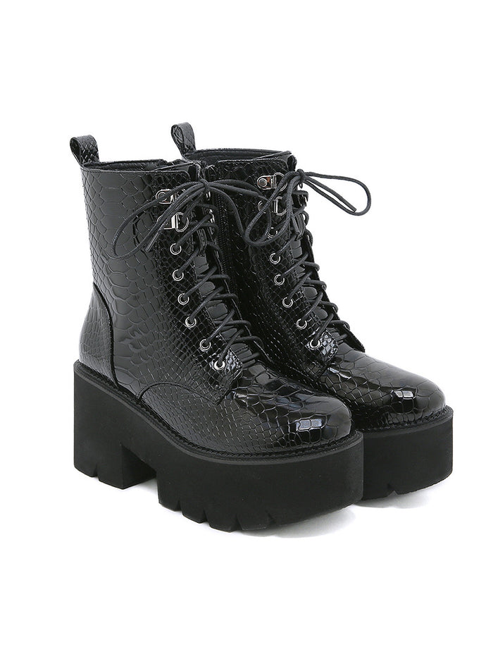 Women's Thick Front Lace Sponge Cake Bottom Martin Boots